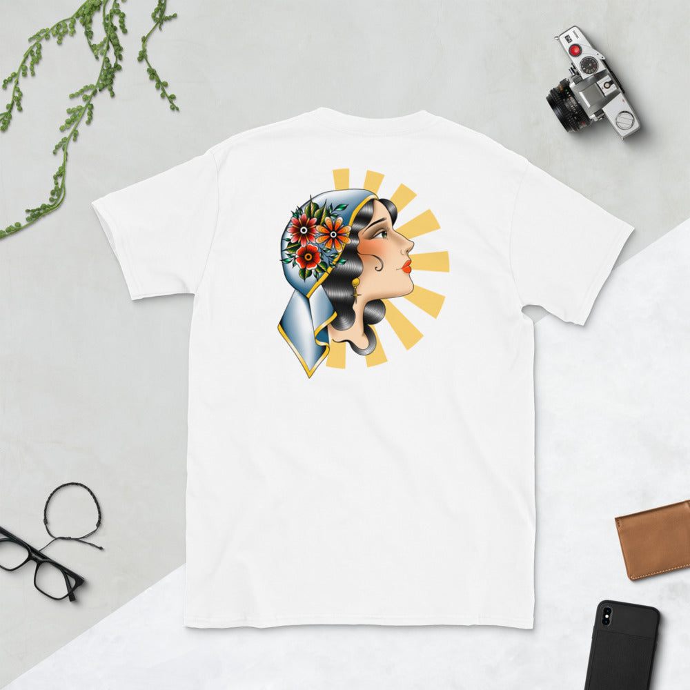 You've now found the staple t-shirt of your wardrobe. It's made of 100% ring-spun cotton and is soft and comfy. The double stitching on the neckline and sleeves add more durability to what is sure to be a favorite!
